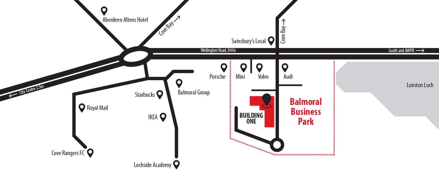 Balmoral Business Park is situated just 3m (5km) south of Aberdeen city centre and faces the A956, the principal route into and out of the city from the south. The Aberdeen Western Peripheral Route (AWPR) is easily accessed from the park.